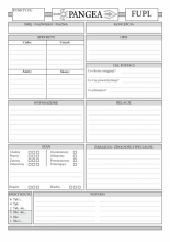 Dwustronna, uniwersalna karta postaci do gry fabularnej FUPL. Na drugiej stronie zawiera skrót zasad. |